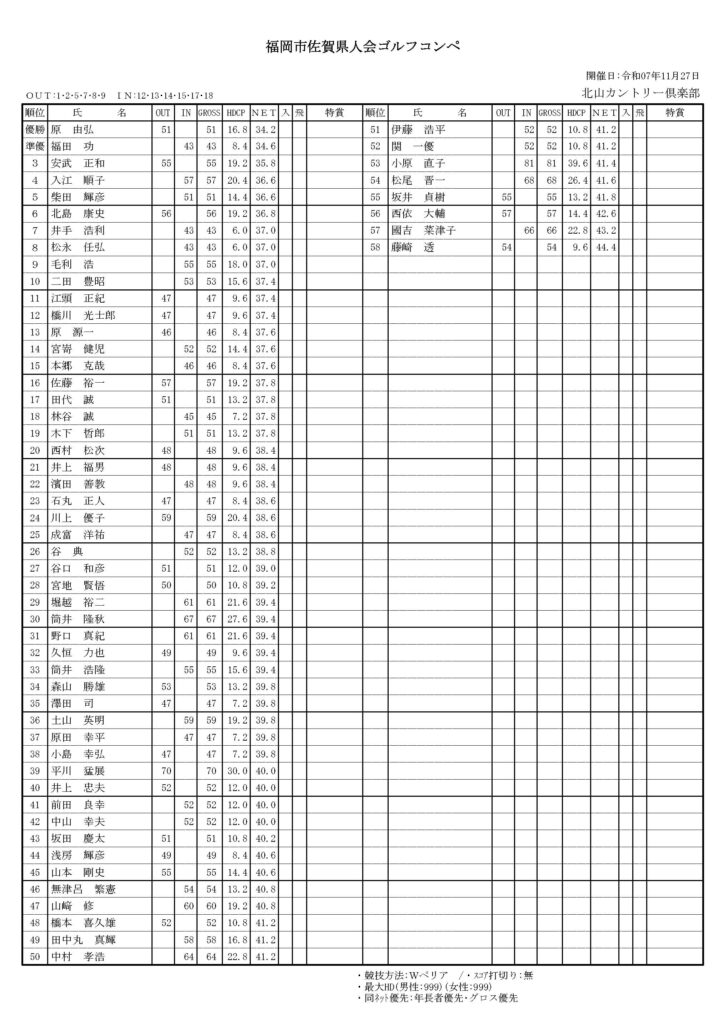 福岡市佐賀県人会ゴルフ大会 活動報告